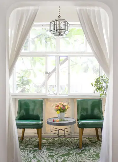 在大门的入口处放置鱼缸或是屏风,用阳台窗、玄关柜或者盆栽、爬藤植物将大门和阳台阻隔,另外长时间拉上窗帘也是一种化解的方法。
