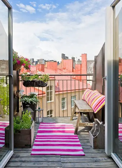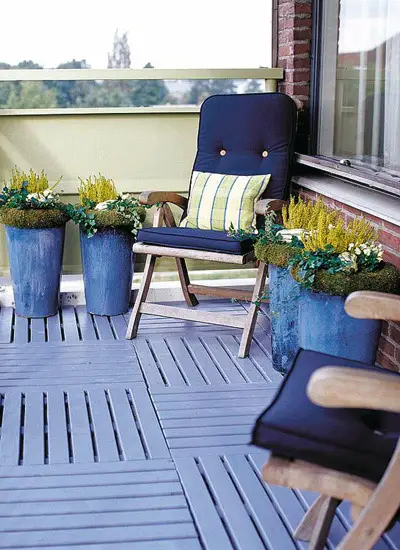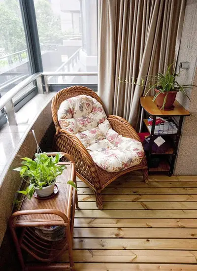 阳台是与大自然交流的空间,即使要防止杂物,也需要保持整洁,可以在阳台一家放置储物柜,存放不经常使用的物品。此外可以在阳台侧墙面、地面做一些装饰美化,在阳台种植花草,营造园林小空间,为家居增添自然景致。
