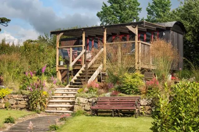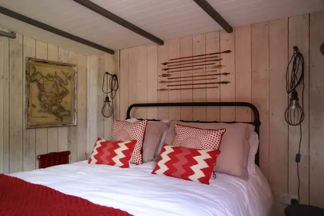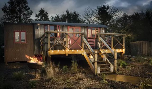 这个颇具西部风格的自助式小屋,位于英国南部的康沃尔郡,用一个废弃的旅行拖车箱改造而成,里面有燃木壁炉和现代化供热设施,2个卧室,南北两个花园。