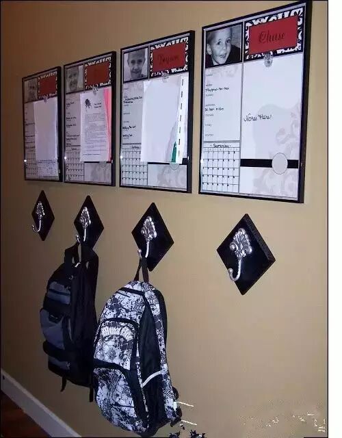 主要是记录今天要做的事情,以及明天事项的安排。放在门口的玄关处,孩子放学回家挂上书包后,把今天要做的事情看一遍,然后有条不紊地一项项完成。