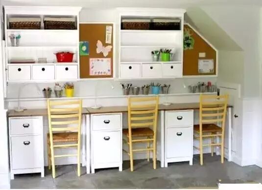 如果家里不止一个孩子,那么学习角还可以是这样的,共同学习起来会更有氛围哦!