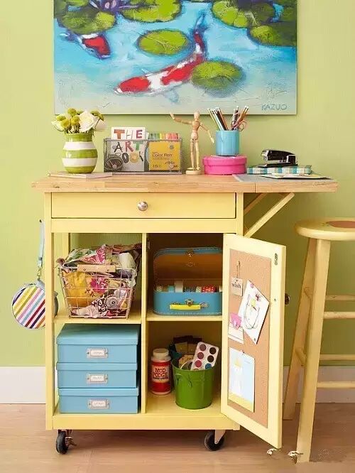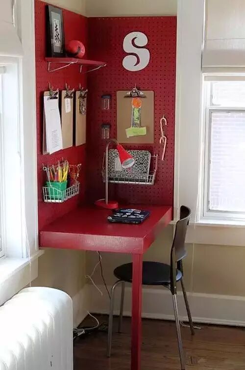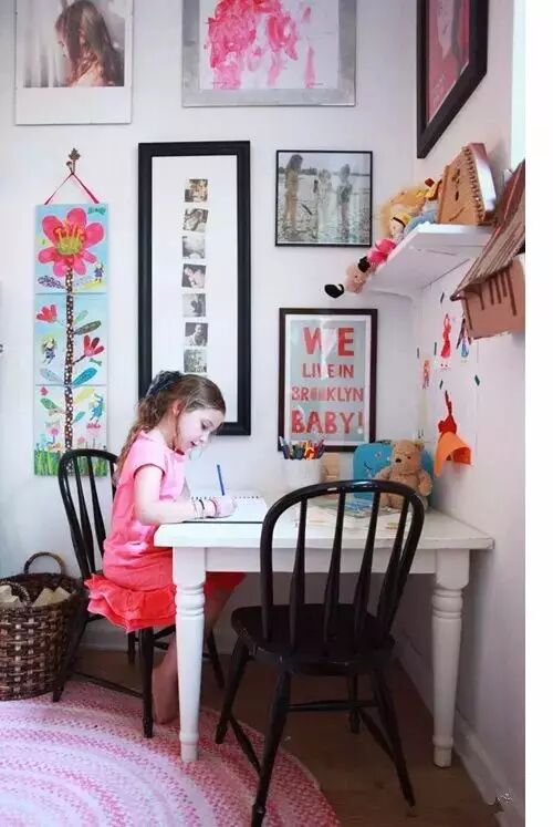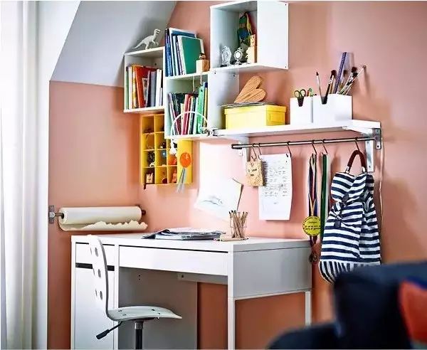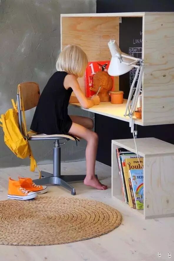 1、家里空间小,但是也并不妨碍妈妈们的奇思妙想,一张神奇的折叠书桌,就可以同时拥有收纳、摆设、书写三项功能。更重要的是这是专属孩子的学习空间。