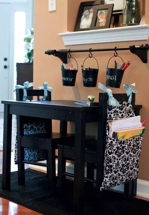 拿一些简单的小桶,把绘画用的彩笔等收纳起来,既显得整洁,又不乏艺术感。