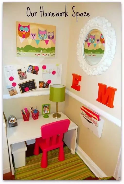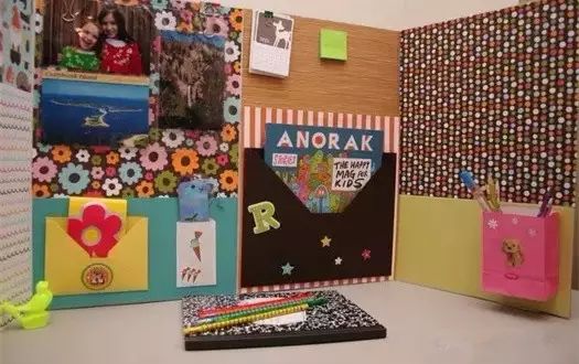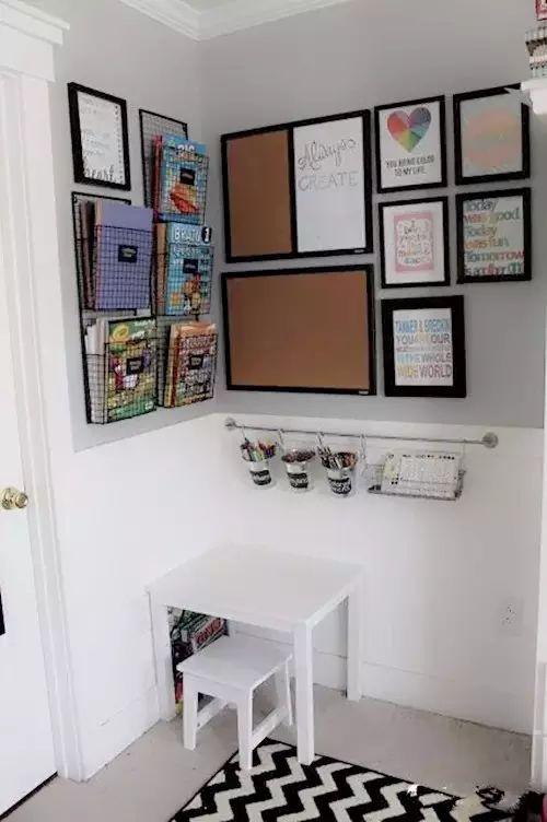 当然擅长做手工的妈妈,还可以通过硬纸板让墙面更漂亮,更丰富多彩起来,跟孩子一起布置的学习角是不是更有意义啊?孩子在学习时,相信也会动力十足吧!