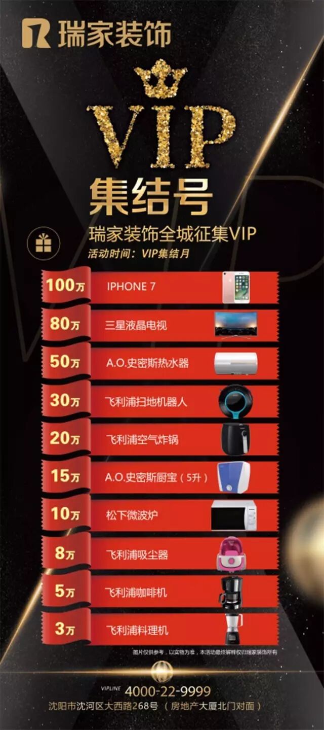 瑞家装饰为庆业主喜迎新居,奉上七月最新装修大礼,瑞家装饰集结号---瑞家装饰全城征集VIP活动,七月震撼全沈城。签单可抽取金条、空调、净水器等豪礼!