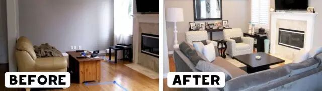 这间客厅没有很大的变化,但是重新布置后明显更加有吸引力了。