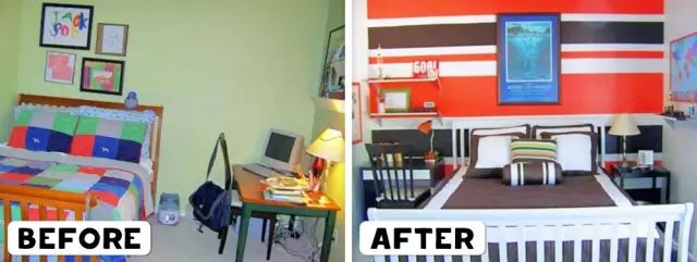 改造前,房间多少显得阴沉;改造后,虽然是黑色的墙壁,但是通过明亮的家具布置后,不再显得空间暗淡无光。地板未做改变,刷上清漆后却显得很新。