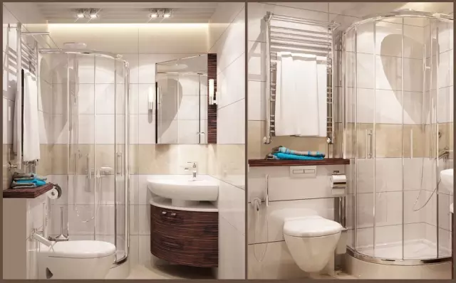 浴室紧凑将淋浴间放在一角,干湿分离。高光泽的材料和玻璃镜面,让小卫生间更加明亮和干净。