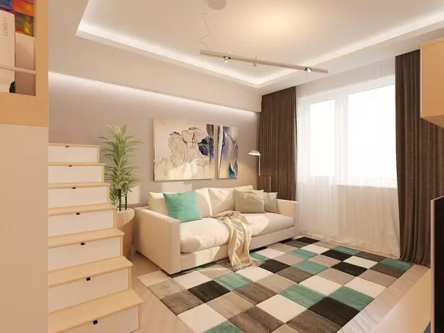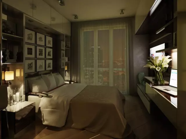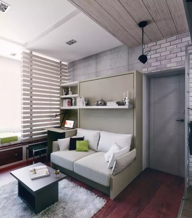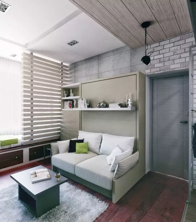 到了晚上沙发床才派上了真正用场,而沙发后的储物柜悬挂的面板是灵活可动可用的。