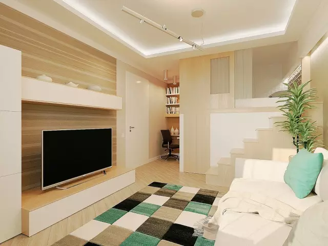 这个被木材占据了大部分的家是Yulia Baranova的设计,甜蜜、时尚的家居装饰,淡淡的绿色清香,也许这里住的是一个美女。利用高度腾出一间阁楼床。