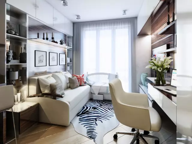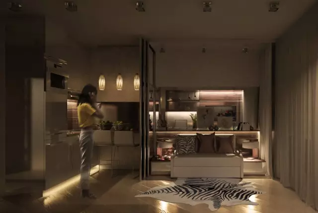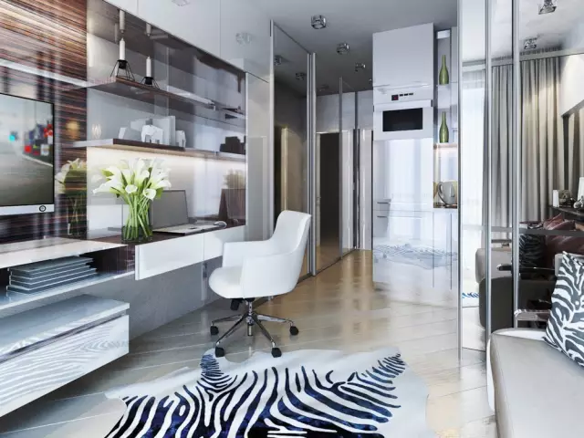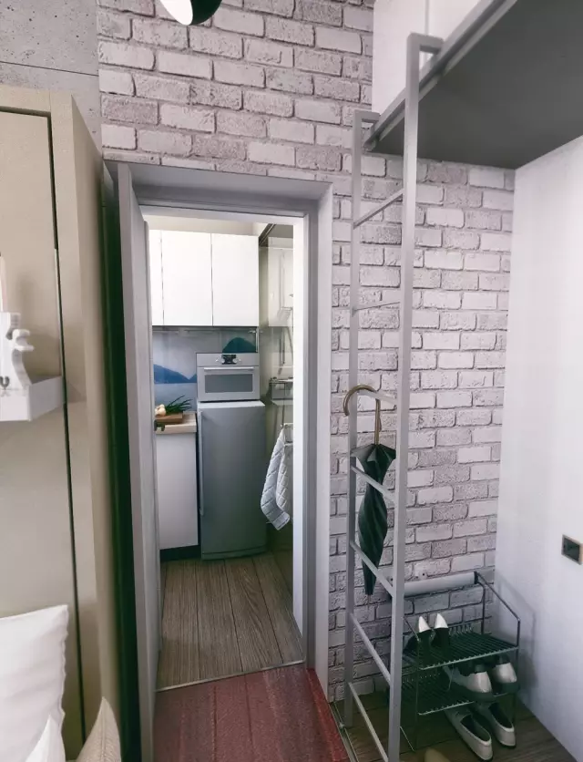家庭办公越来越离不开现在的生活节奏。而巧妙的收纳和多功能使用在小空间至关重要。玻璃推拉门一关,厨房,餐厅卫生间就被隔离在一旁。