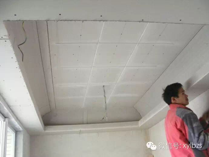 下面平板天花的吊筋还没完全做完,全部算上去不会比平面花的成本少,而成功之后,客户只看到一个白色的顶,与原墙没有任何区别。
