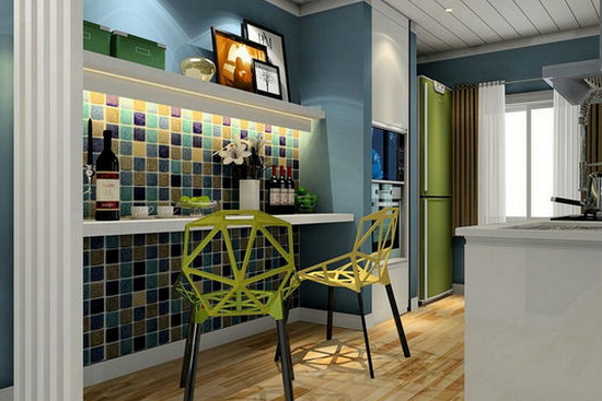 这个家居装修本身就是以马赛克为主,而采用马赛克来装饰餐厅的背景墙,使得整个空间充满了时尚感。