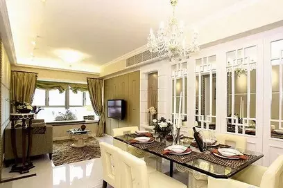 【玻璃门隔断】客厅和餐厅之间用玻璃门隔断,可以提高空间的广度和深度,因为玻璃的透明性本身就有拓展空间的效果。