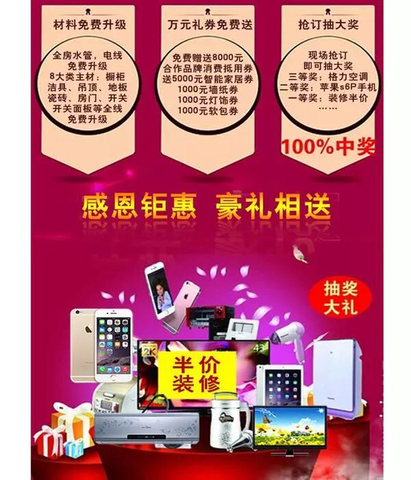 8大类主材:橱柜、洁具、吊顶、地板、瓷砖、房门、开关面板等全线免费升级