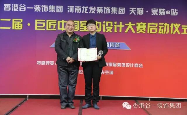 本次大会同时颁布第一届设计大赛颁奖设计师,香港谷一装饰集团设计师荣获金奖。第一届大赛诚邀评审:中装协住宅委员会、河南省装饰协会、郑州市家居设计商会,通过层层选拔、筛选最终评定作品。可见大赛的权威性、专业性。