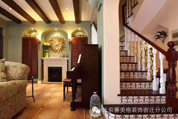 在色彩上的运用是淡雅、柔和、协调,以原木自然色调为基础,白色、红色、绿色、褐色居室整体色彩氛围较为普遍。特别是在墙面与家具以及陈设品的色彩选择上——自然、怀旧、散发着质朴气息的色彩是美式风格的典型特征,壁纸大多也都选择富有机理、质地天然的纸浆制品。