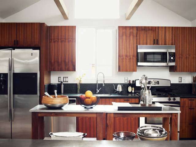 木质的橱柜搭配不锈钢的餐具,俨然是具备现代化的气息,却又渗透进自然,流露而出的成熟魅力。