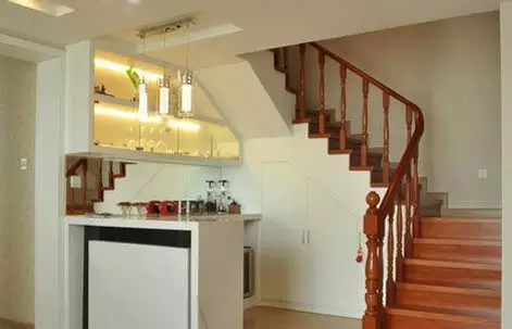 转角楼梯:复式户型最常用的楼梯是转角楼梯,它能充分利用有限的空间来完成两层楼的连接,而且楼梯让空间纵向对称性更好,很好地分割了视觉空间。