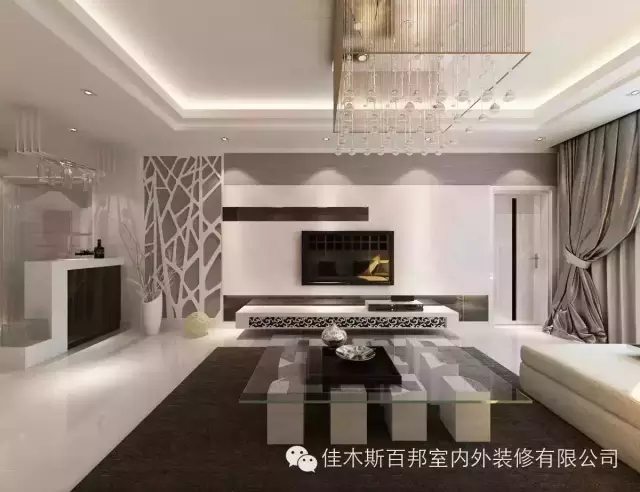 给电视墙装上大移门,不需要时关上,空间显得更加整体不零碎。