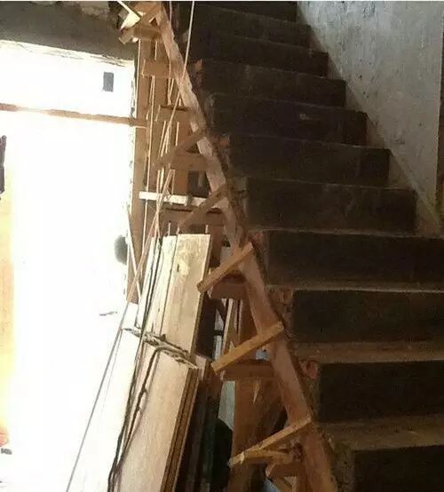 改造前——二楼卧室床背后的楼梯:形格势禁、思前想后,楼梯只能安在这个位置。二楼床头只能挨着楼梯,于是后来在床背后另砌了一面墙。