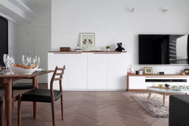 ▲ 给电视墙装上大移门,不需要时关上,空间显得更加整体不零碎。
