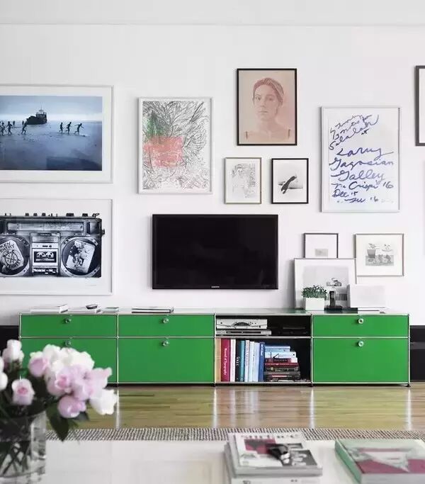 你可以把它变成照片墙,可以让电视成为「照片」的一员,甚至可以把电视「镶」进相框,或者更简单的方法是整一面颇有特色的壁纸,甚至是黑板墙,当然,最高能灵活的还是专属定制的电视柜!