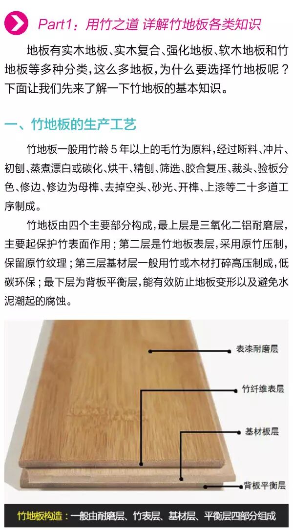 竹地板既有地板的舒适脚感,又能带给家一种回归自然、清新雅致的感觉。随着市场认识度的提高,越来越多的家庭开始倾向于选择铺装竹地板。不过竹地板市场还不规范,近日,国家质检总局就公布了2批次产品甲醛释放量不符合标准的竹地板产品。那么如何选到优质的竹地板呢?一起随百邦来看看接下来的内容吧。