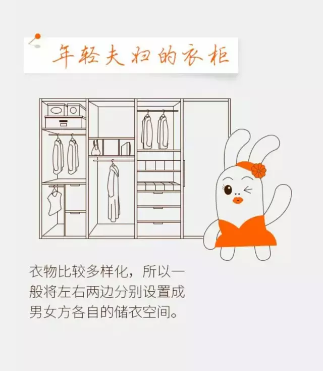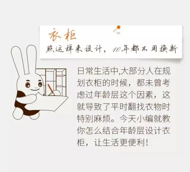 衣柜设计就是根据自己平时的衣着习惯,哪一类的衣服会多一些,哪一类少一些,然后来选择各种功能分区的大小组合。