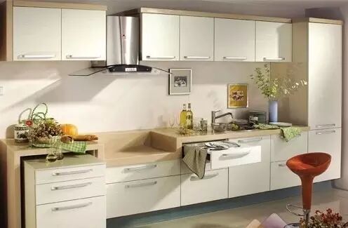 1.吊顶:以吊全顶最为理想,这样一来,擦洗也比较容易。一般会选择PVC、铝塑扣板吊顶。建议选择具有抗老化效果的材料,应对厨房这个整日烟熏火燎的地段是最明智不过的了。