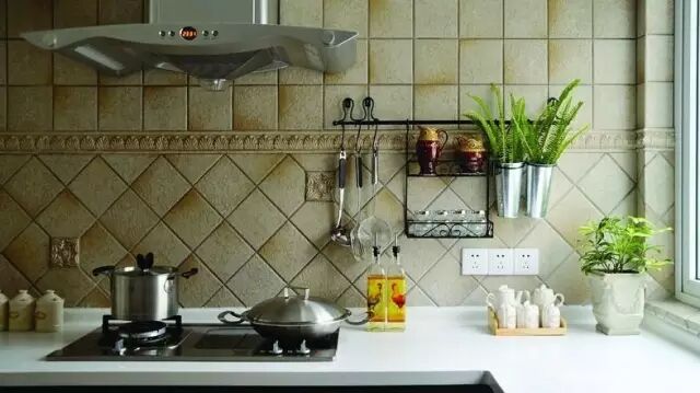 3.台面:建议选择具有防火和防水功能的材料来制作。如果要制作橱柜,以选用成品为最佳。高度上,应是以家中常做饭人的身高来确定。一般操作台高度约为85cm,水槽两侧应该各有一个长度在40-60cm间的台面,方便放置蔬菜。如果餐厨不是一体化的,建议灶台边设置一块40-60cm的台面,可以放置刚起锅的菜肴。在橱柜背面,需要制作一块挡水板,高度要求比台面高出一些,预防水流出来到橱柜的背面上,这样的话,基材会出现膨胀、开裂、脱落等问题。