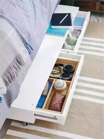 床下面设计成抽屉,放一些换季的衣服、床单都可以。