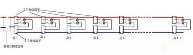 这种情况在家庭装修中,一般是不会出现的,一旦只有一条回路的话,只要有一个地方出现短路,就会导致整个房间都断电,显然这是不可取的。