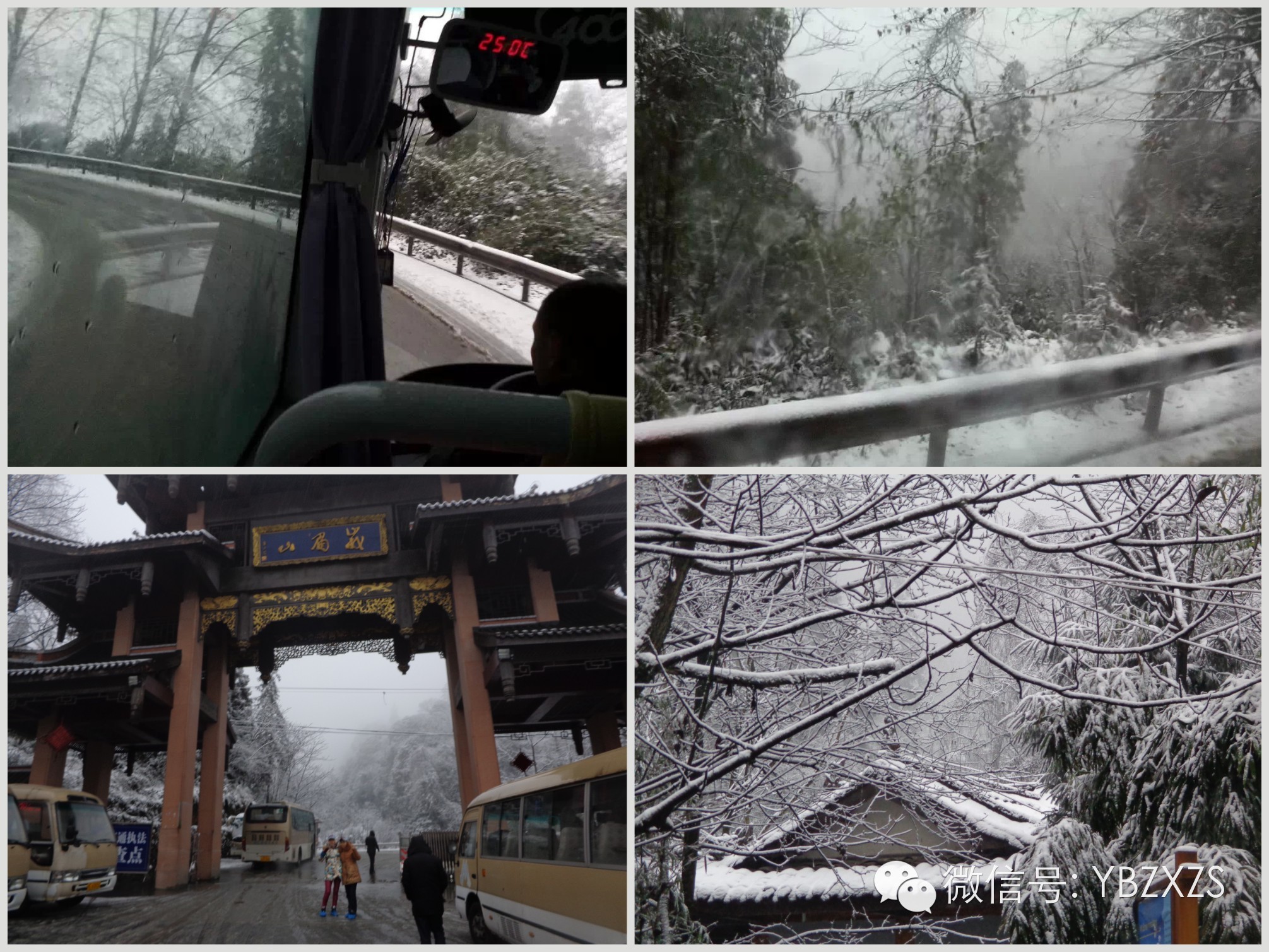 第二天一早,我们就准备出发去金顶了。观光车,行自半山腰,已经可以看到还没有化掉的积雪,雪白雪白的,一小堆一小堆的,已经让所有人都兴奋了,真想马上到达山顶,滑雪、堆雪人、打雪仗……