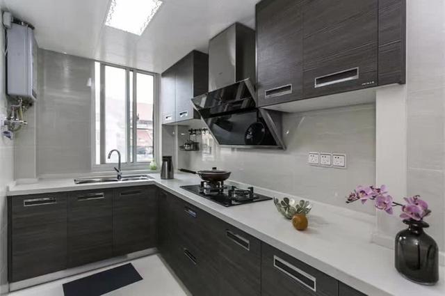 浅色的墙面让深色的橱柜更加突出,色彩上典型的黑白配,经典耐看,还不怕脏,这个厨房做到了;