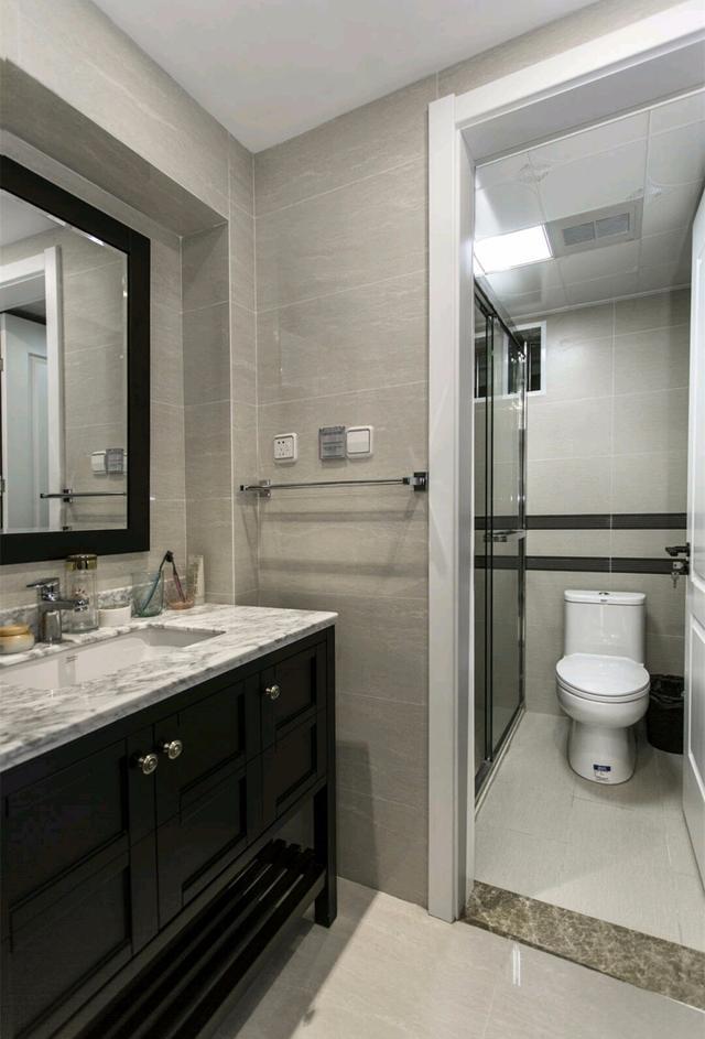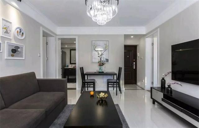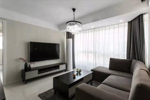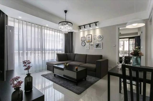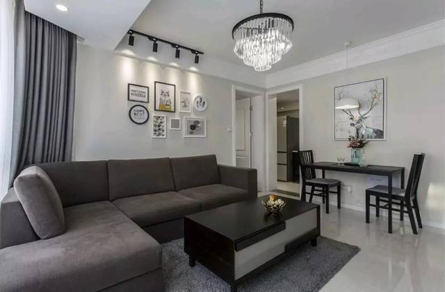 浅色调的硬装搭配深色调的软装,具体为暖色调的墙面及地面,还有白色的顶面,搭配深灰色的沙发,黑色的家具等,我猜这应该是理智型男性喜欢的氛围吧!