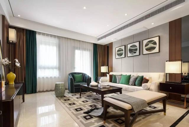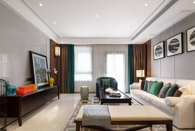 这是一套120㎡的三居室,设计风格为现代中式;