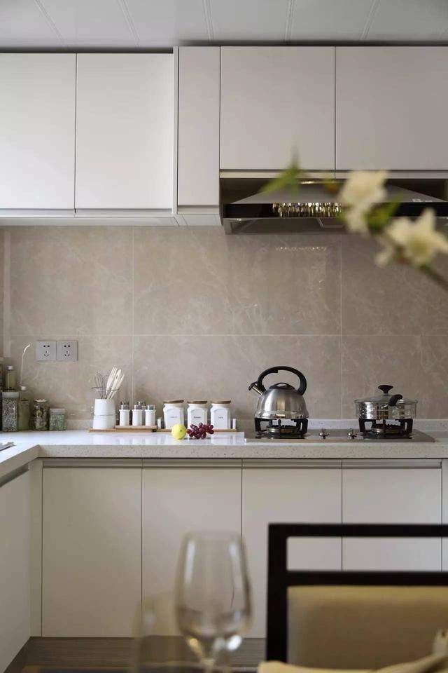 白色的橱柜,明亮又干净,很有年轻人的时尚感;