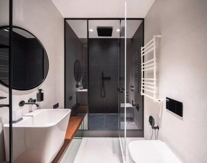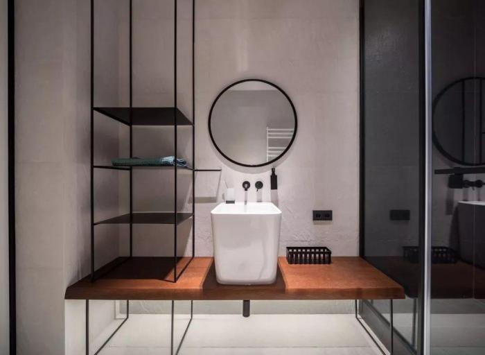 ▲卫生间纵深的布局,淋浴区以深色为主,让空间显得更加的简约高档。