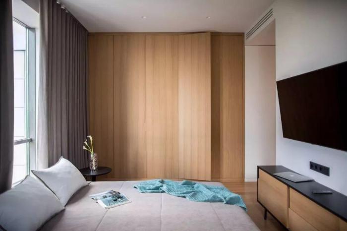 ▲木质感的通顶衣柜,也让空间显得十分自然实用。