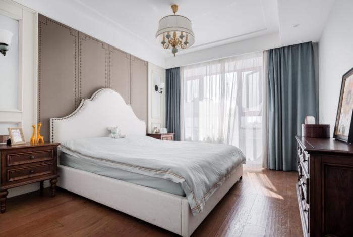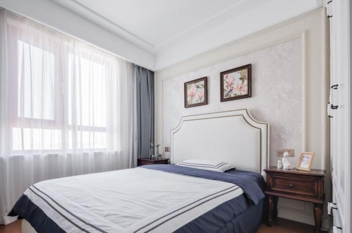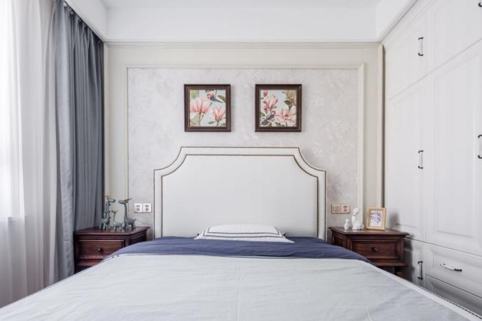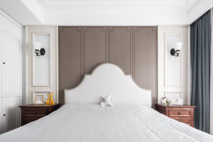 ▲床头两侧对称的造型与床头柜,白色活力精致的装饰品,为卧室带来了精致闲适的气息,既有美式的雅致而又有现代的舒适。