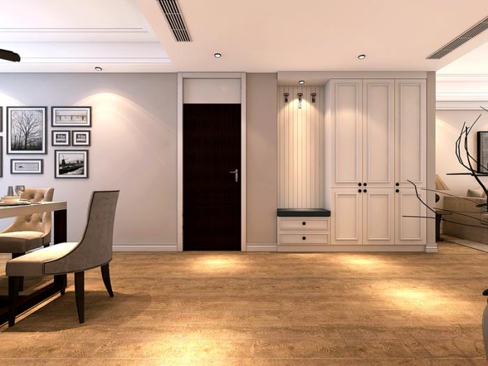 经过沟通,设计师使用白色和米色作为他们这个四居室简美风格新家的主色调,通过材质和细节营造他们所追求的这种自然简约、舒适自由的生活方式,入户玄关柜太实用了,嵌入壁炉的电视墙设计也值得借鉴!