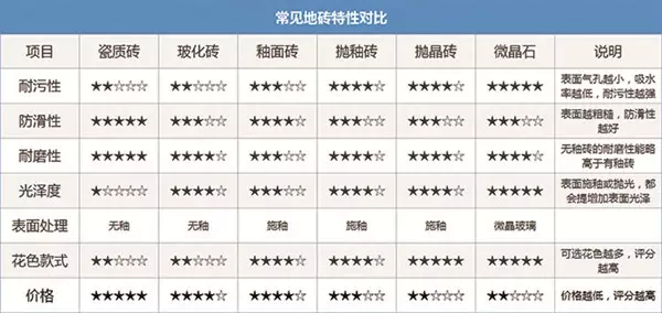 看了这么多介绍,相信您已经对常见的瓷砖品类有了一定的了解,那么孰好孰坏,该怎么取舍呢?我们就来总结一下: