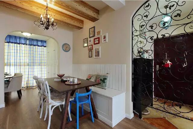 面 积: 113平 房 型:2房2厅2卫 楼 层: 11/17 设计风格:美式 从大学毕业到上海工作,已7年有余。在这个城市,买一套房真的是不容易,所以下决心一定要好好装修一下,家装修的有感觉,才能住的开心! 必竟家很重要!多余的不说,下面上图! 进门玄关这里,铁艺的拱门,我最喜欢了~~~