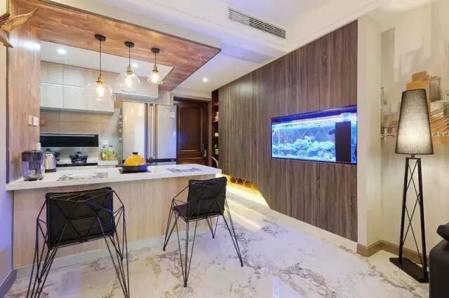 餐厅与厨房设计在一处,对于一个独居的都市白领来说,自己爨火做饭的频率应该不会太高,所以这样休闲的设计恰好迎合了业主想要一个释压空间的想法。