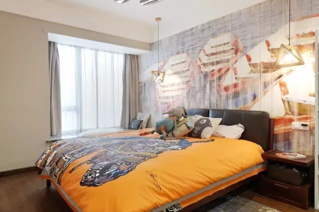 这个墙纸本来的底色并不是这样的,墙上的图案是我们圣都的设计师亲手画上去的,可谓是真正的独一无二哦!喜欢的业主朋友记得来圣都咨询,你也可以拥有属于自己新居的炫酷的背景。