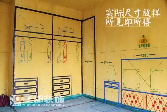 但如果在工地上看到衣柜的内部结构尺寸在墙上体现出来后,就能很直观地知道,家具在自己的房子空间比例合不合理,衣柜的内部功能尺寸合不合理。