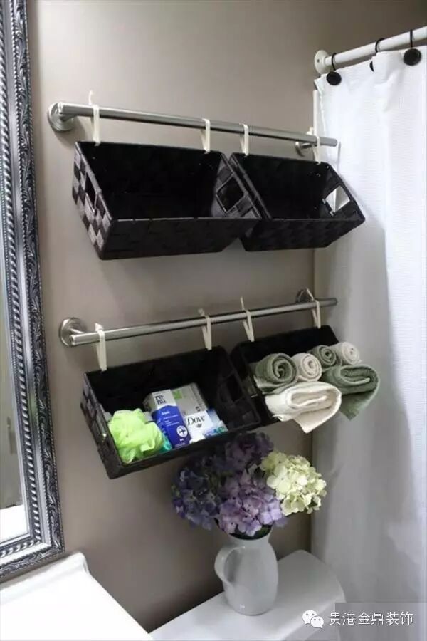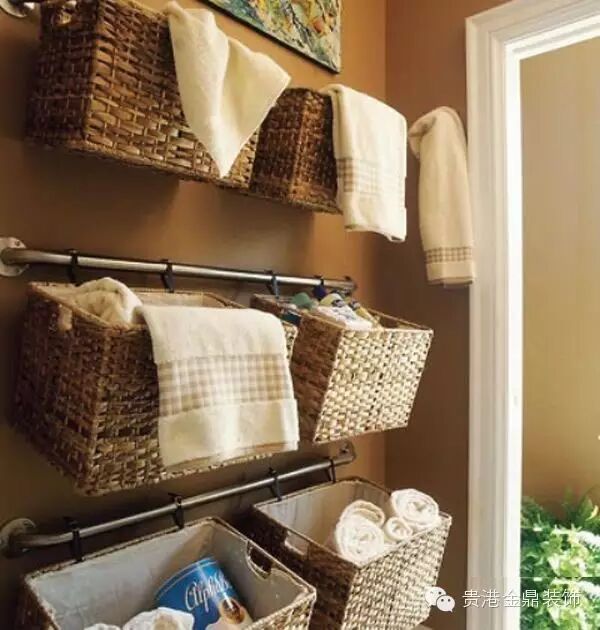 马桶水箱上方的空间也吧要忽略哦。像这样装上收纳篮子,美观又实用。
