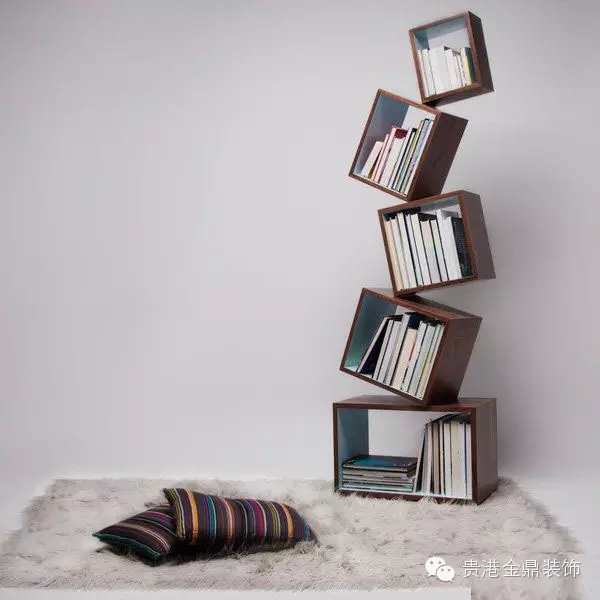 书架设计者选用七巧板的理念打造别具风格的书架。各种形状的收纳盒拼接在一起,既可以作为书架,而且还可以作为生活中的简单饰品。书架的形状就像一只张着嘴巴的大鳄鱼,等待着食物的到来。