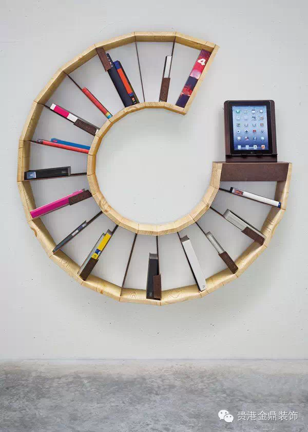 这款书架的设计更加别出心裁。设计者将书架设计成太阳灶的形状,边缘是书籍的摆放之处,中间则用舒适柔软的坐垫补充。坐在书籍之中汲取知识,会是一种怎样的感受呢?
